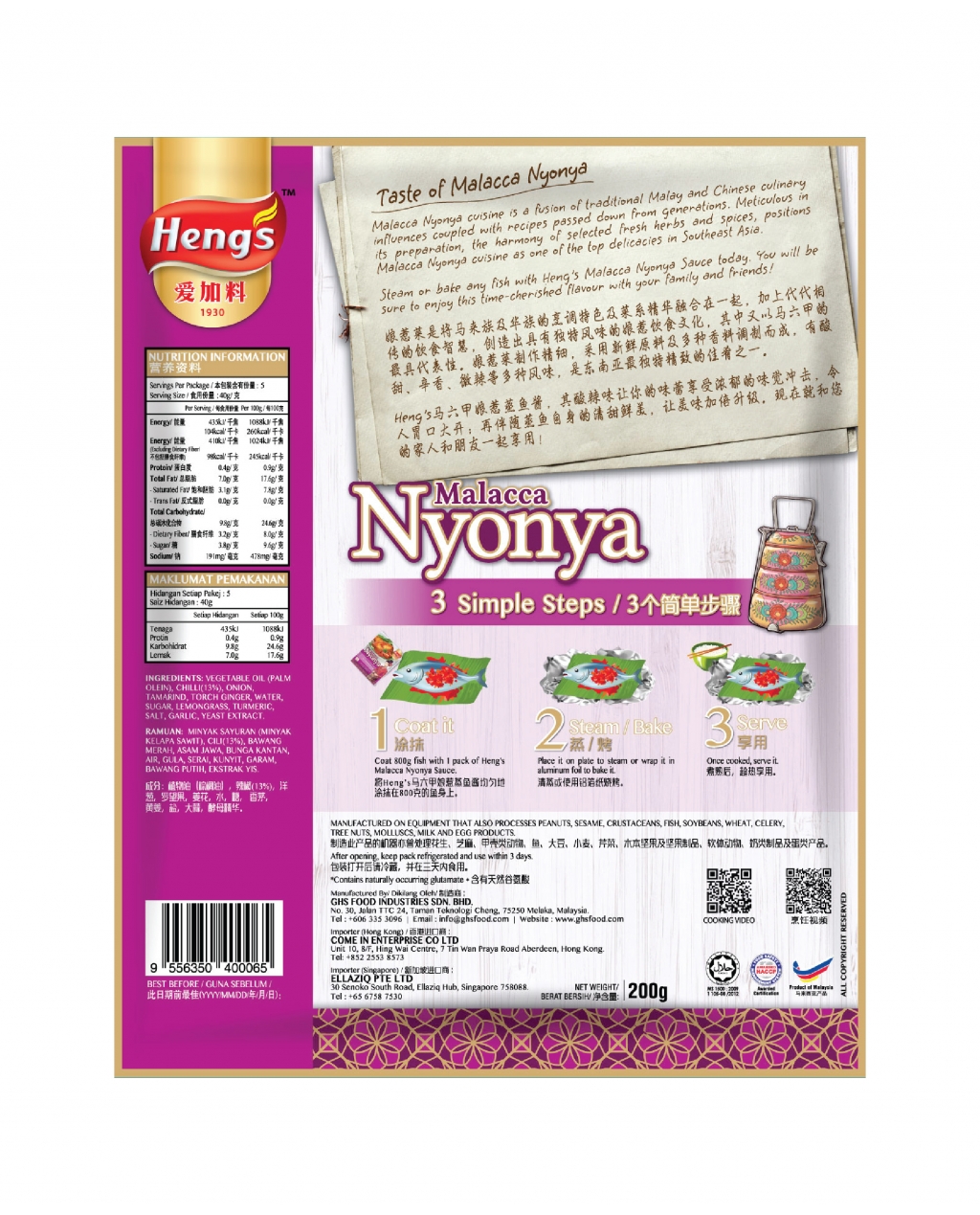 Steam or bake any fish with Heng’s Malacca Nyonya Sauce today. You will be sure to enjoy this time-cherished flavour with your family and friends!