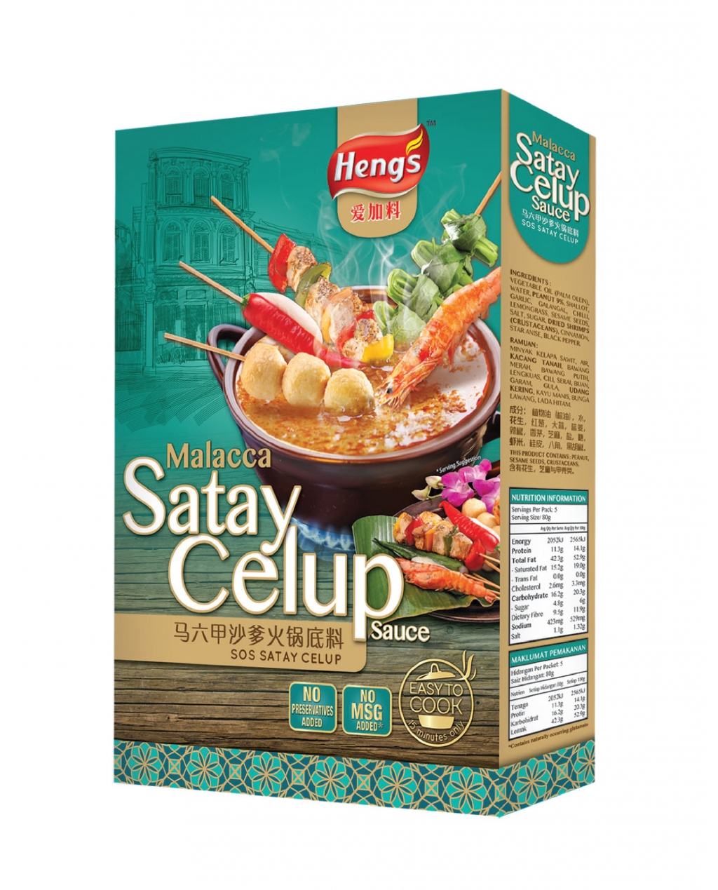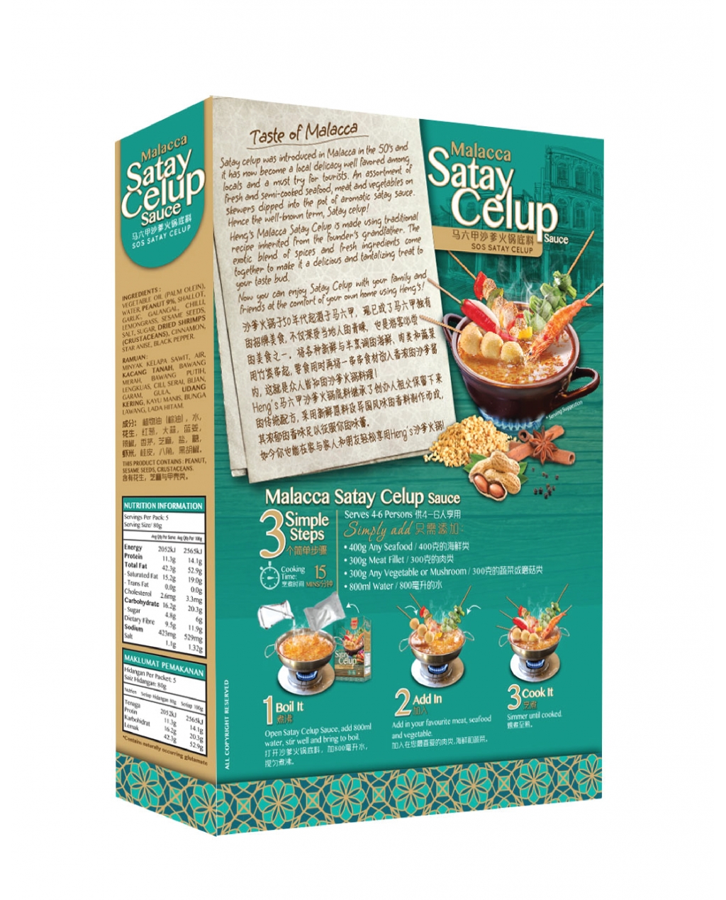 Heng's马六甲沙爹火锅底料继承了创办人祖父保留下来的传统配方,采用新鲜原料及异国风味的香料制作而成,其浓郁的香味足以征服你的味蕾。如今你也能在家与家人和朋友轻松享用Heng's沙爹火锅!