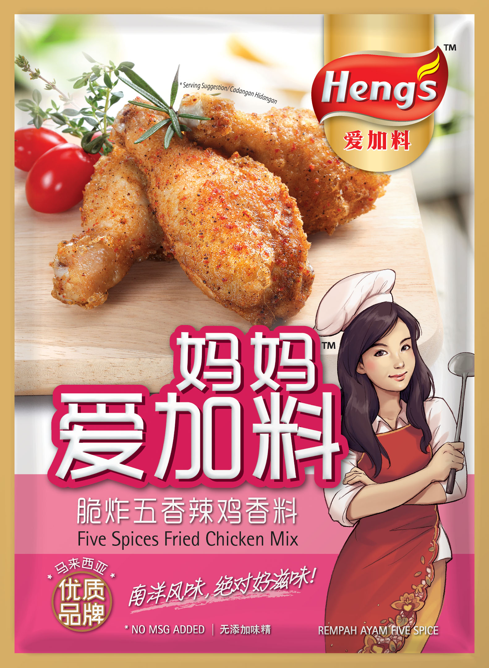 1. Coat the chicken with Heng's Five Spices Fried Chicken Mix.